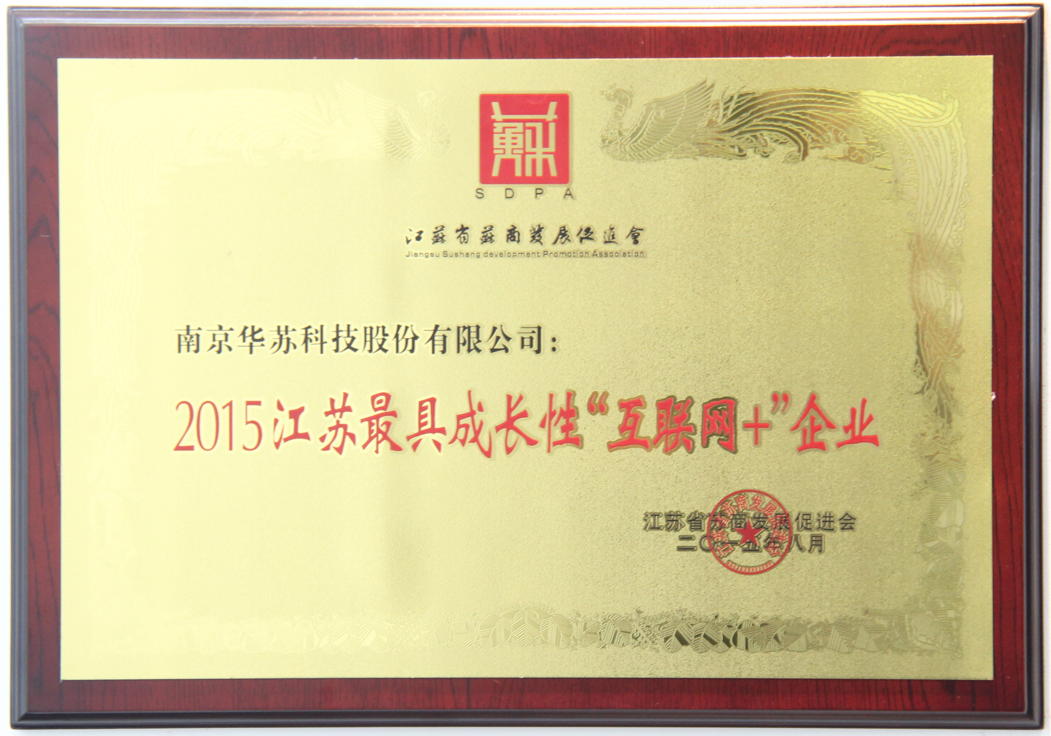 華蘇榮膺“2015江蘇最具成長(zhǎng)性‘互聯(lián)網(wǎng)+’企業(yè)”稱號(hào)