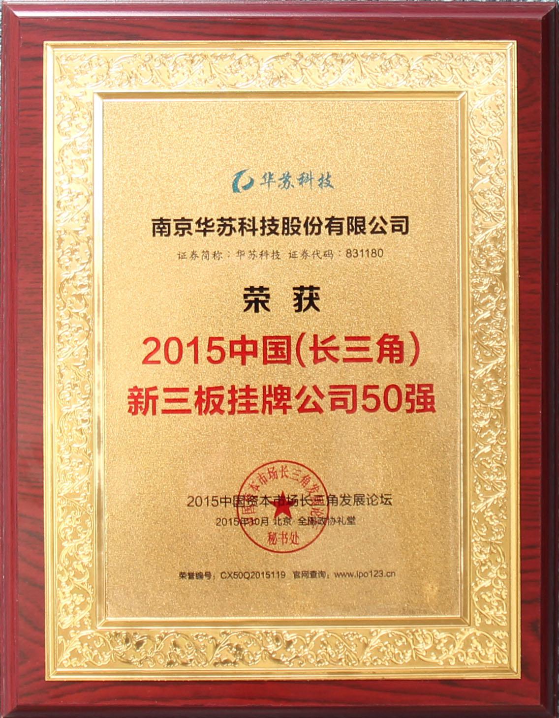 華蘇科技 榮獲“2015中國(長三角)新三板掛牌公司50強(qiáng)”
