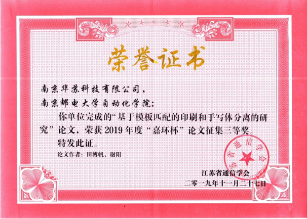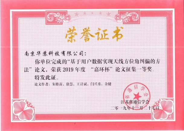 華蘇科技榮獲2019年度江蘇省通信學會論文征集一等獎、三等獎
