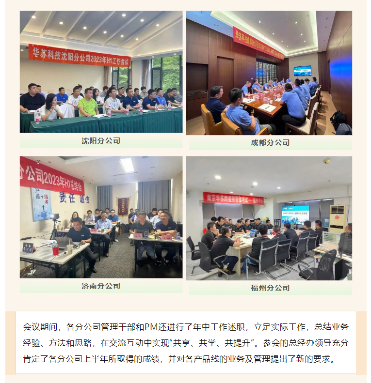 近日,華蘇科技 各分公司陸續(xù)召開半年工作會議,全面審視上半年經(jīng)營情況,明確下半年工作目標,