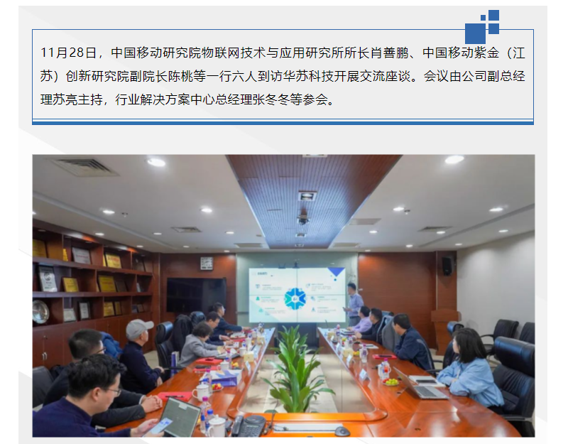 中國移動研究院物聯(lián)網(wǎng)技術(shù)與應(yīng)用研究所所長肖善鵬、中國移動紫金(江蘇)創(chuàng)新研究院副院長陳桃等一行六人到訪