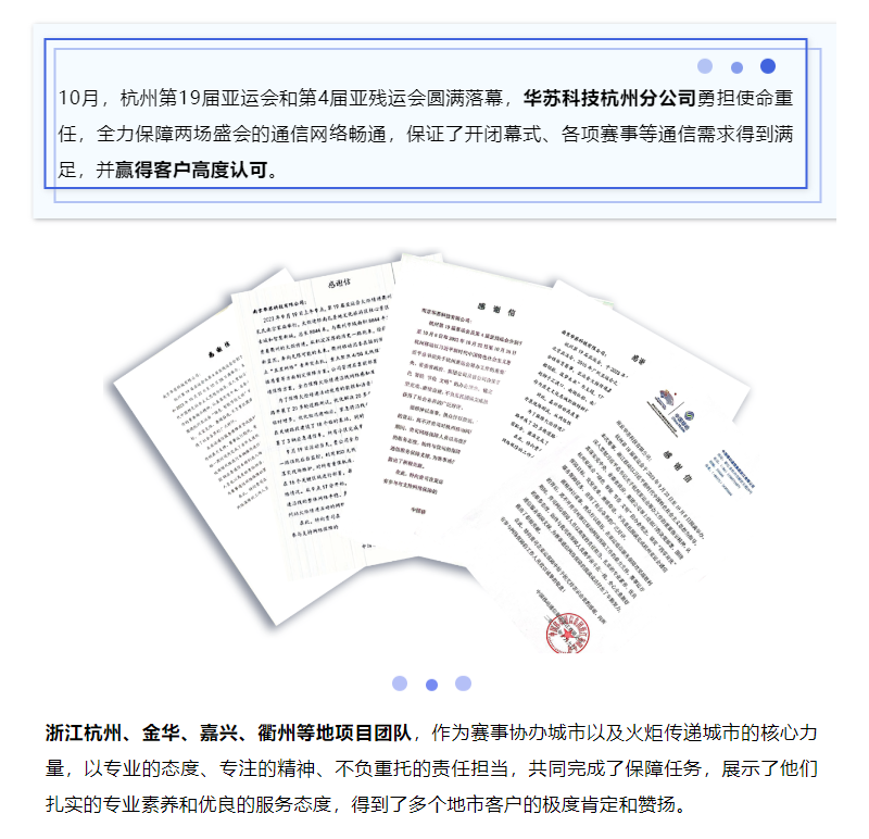 10月,杭州第19屆亞運(yùn)會(huì)和第4屆亞殘運(yùn)會(huì)圓滿落幕,華蘇科技 杭州分公司勇?lián)姑厝危?/span>